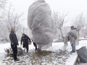 Batman Belediyesi, kent genelinde etkisini artıran soğuk hava ve don riskine karşı cadde, bulvar ve yeşil alanlardaki bazı ağaç türlerini koruma altına aldı.