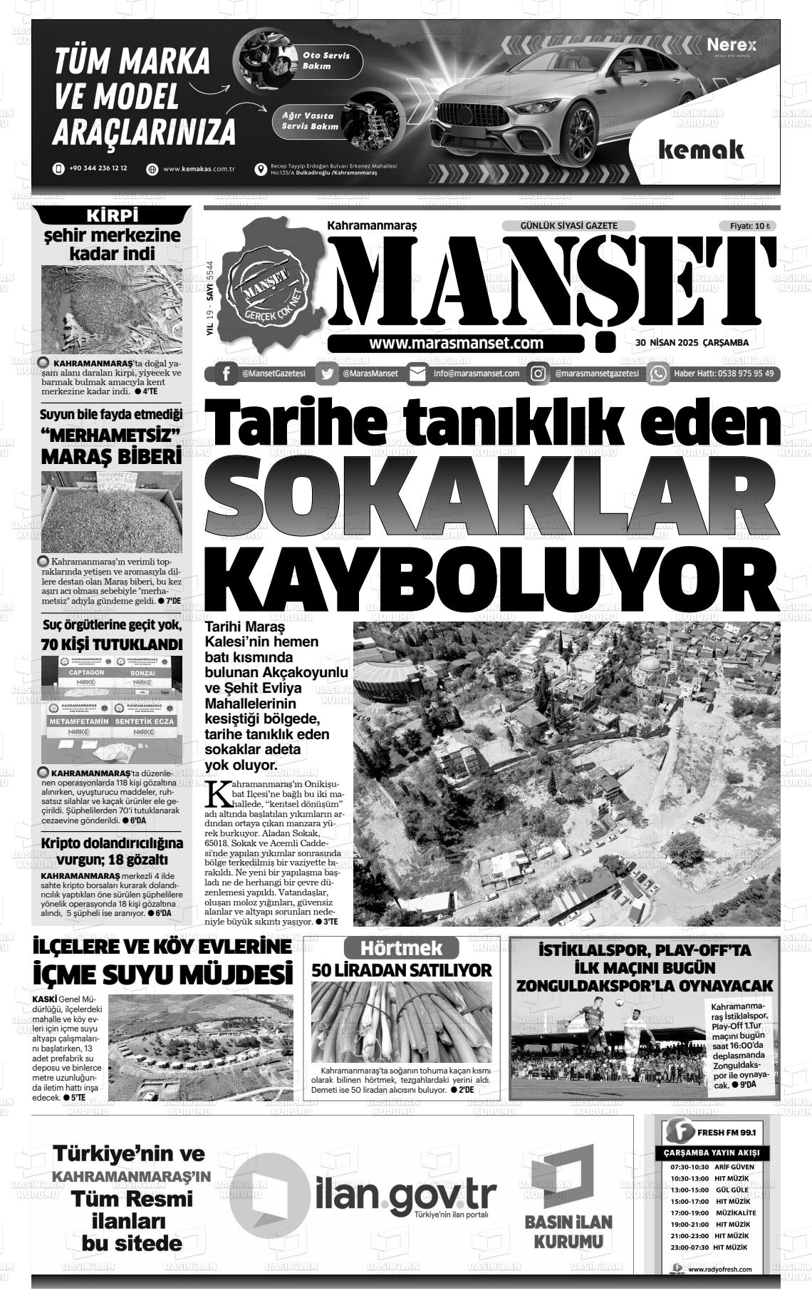 KAHRAMANMARAŞ MANŞET