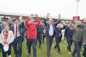 Törende futbolculara madalyaları takdim edilirken, şampiyonluk kupası Milletvekili Nasıroğlu ve takım kaptanlarının ellerinde yükseldi. Kırmızı-beyazlı ekip, kupa sevincini tribünleri dolduran taraftarlarla birlikte yaşadı.