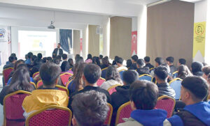 Yunus Emre Anadolu Lisesi konferans salonunda gerçekleşen ‘Hesap İBAN Bilgisi Paylaşma Suçtur’ konulu seminere İl Milli Eğitim Şube Müdürü Abdurrahim Kusen, öğretmenler ve öğrenciler katıldı.