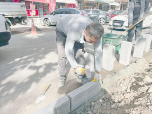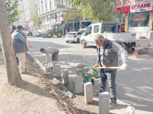 Belediye Fen İşleri Müdürlüğü, 5 personel, 1 kepçe ve 1 pikap desteğiyle gerçekleştirdiği çalışma kapsamında, yıpranan ve zarar gören taşlar sökülerek yerlerine yeni bazalt taşları döşüyor.